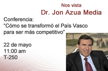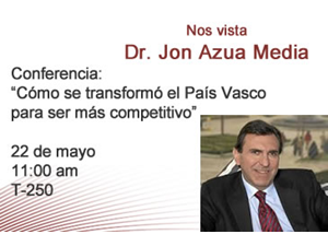 En esta línea, igualmente, impartió la sesión extraordinaria correspondiente al análisis del Caso del País Vasco como una estrategia de desarrollo económico, en el PEC (Programa de Estrategia y Competitividad) del IESDE (www.iesde.edu.mx), a los alumnos del MBA-Executive. Jon Azua ha ilustrado su exposición con las lecciones que aporta la experiencia de transformación competitiva vasca de estos últimos 30 años, y ha repasado los elementos clave en la competitividad que se observan en el escenario actual a lo largo del mundo, y de forma específica, los nuevos elementos críticos que explican el comportamiento de empresas, gobiernos y países en el mundo de hoy.